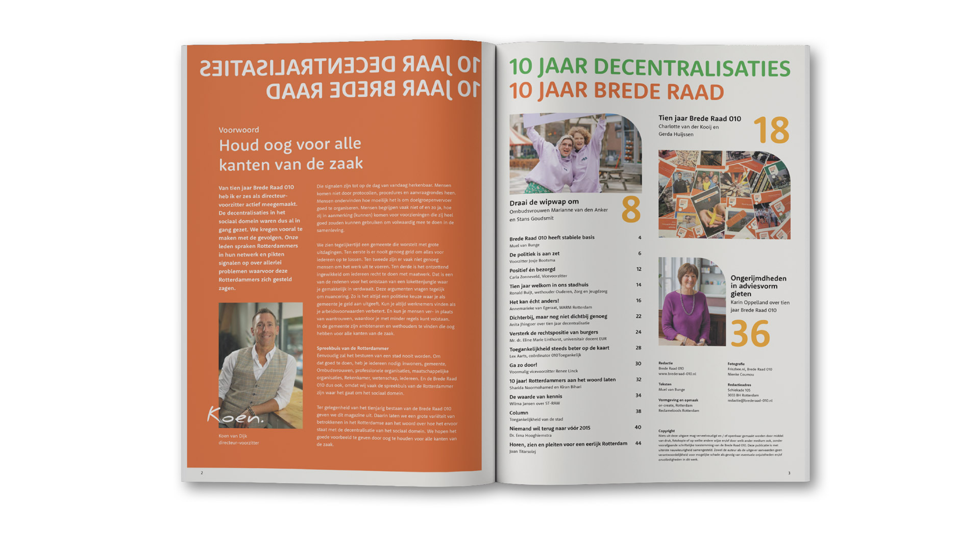 Wij verzorgden het concept, ontwerp en de realisatie van het magazine. Een uitgave die recht doet aan tien jaar inzet van Brede Raad 010 voor een toegankelijker en eerlijker sociaal domein in Rotterdam.